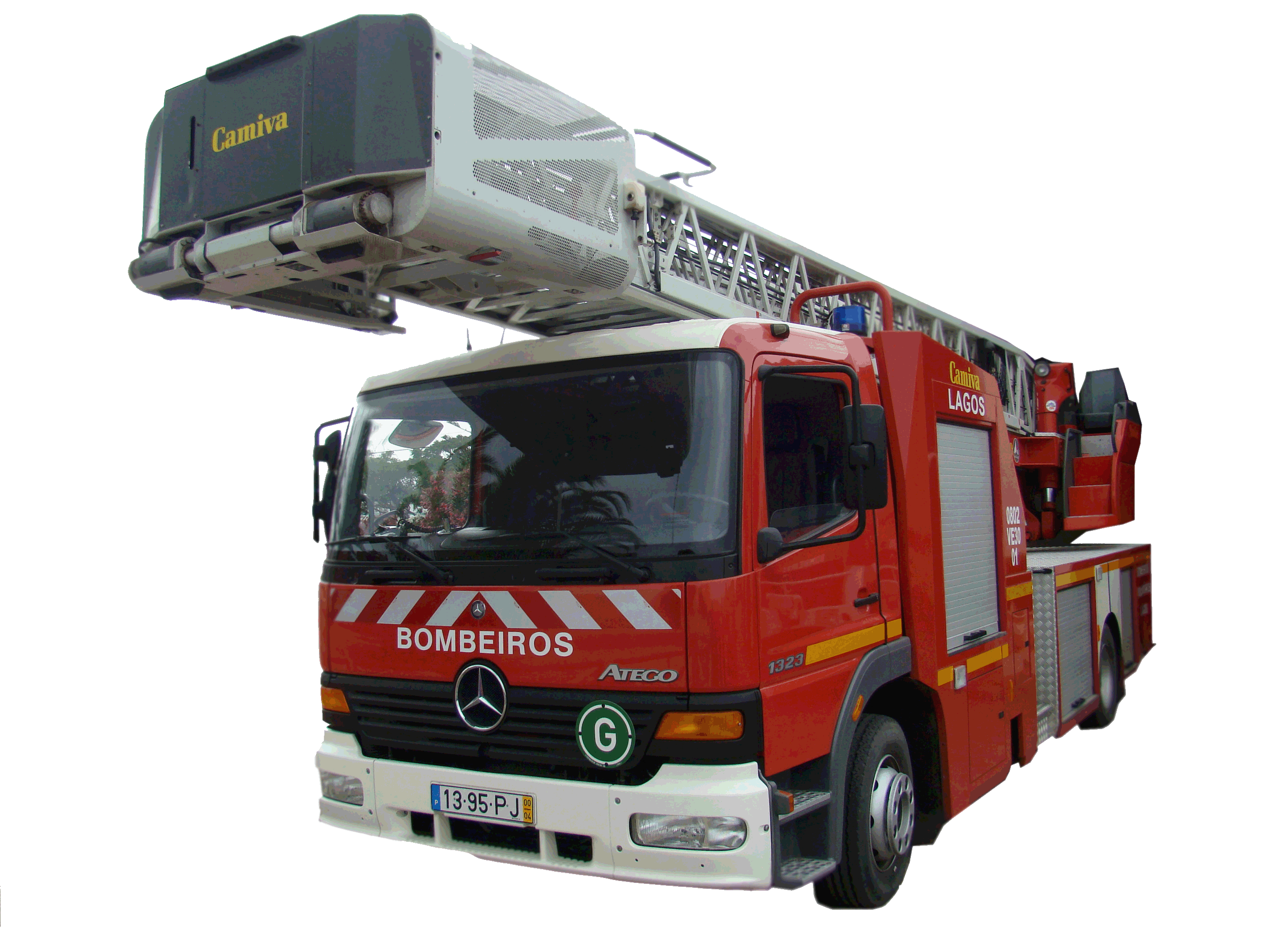 Veículo Auto Escada que pode atingir os 30 metros de altura, Normalmente Usado em Incêndios Urbanos, Salvamentos, Acesso a Extruturas